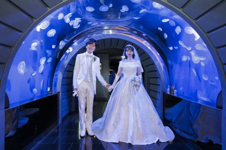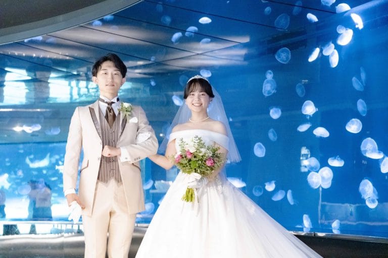 思い出の街・池袋で、幻想的な水族館をふたり占め自然体の笑顔が輝く、フォトウエディング2025/04/20純志 様 & 沙織 様ロケーションフォトヘアメイクフォトスポットウエディングドレスウエディングブーケ